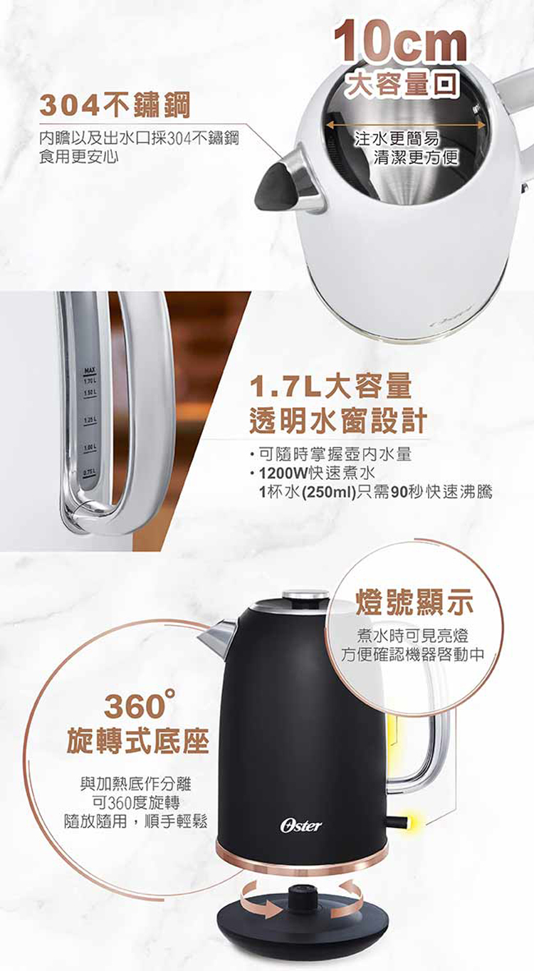 ◆ 1.7L容量搭配1200瓦功率:省電且快速沸騰