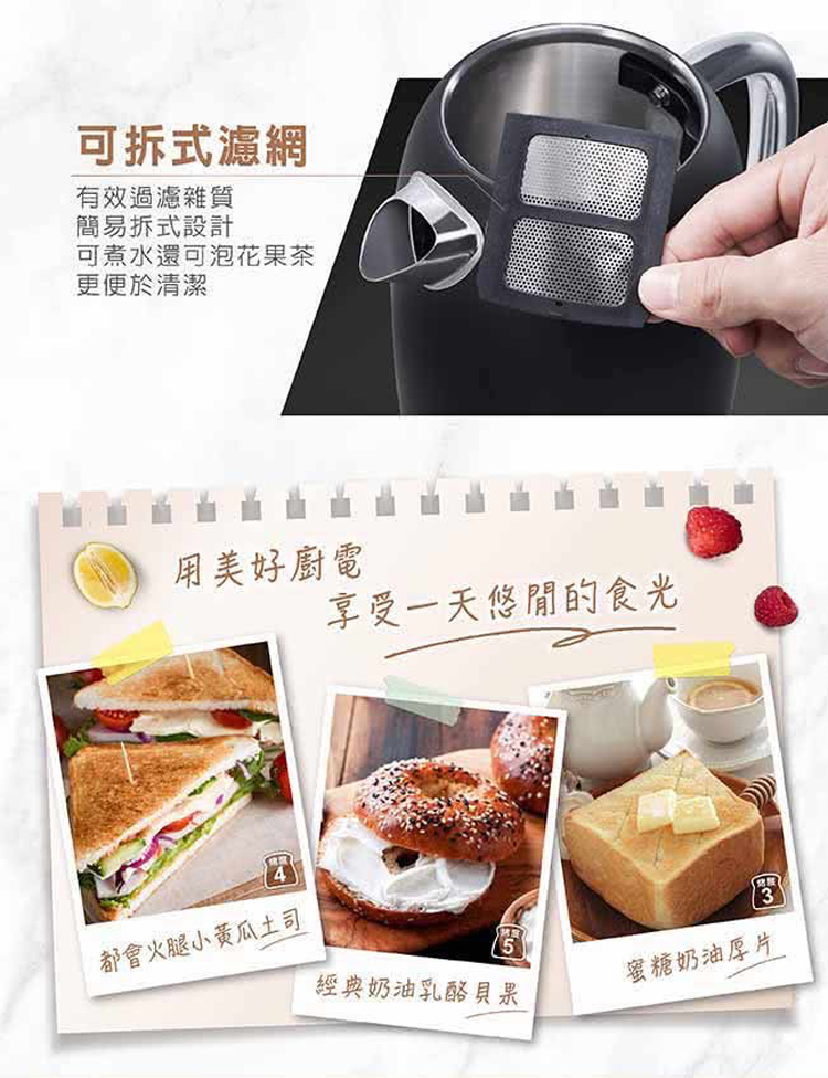 ◆ 可拆式濾網:有效過濾雜質,簡易拆式設計。除可煮水更可泡花果茶,更便於清潔