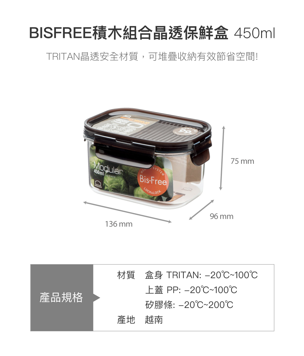 盒身為Tritan共聚酯材質,材質輕巧安全,不含塑化劑及雙酚A