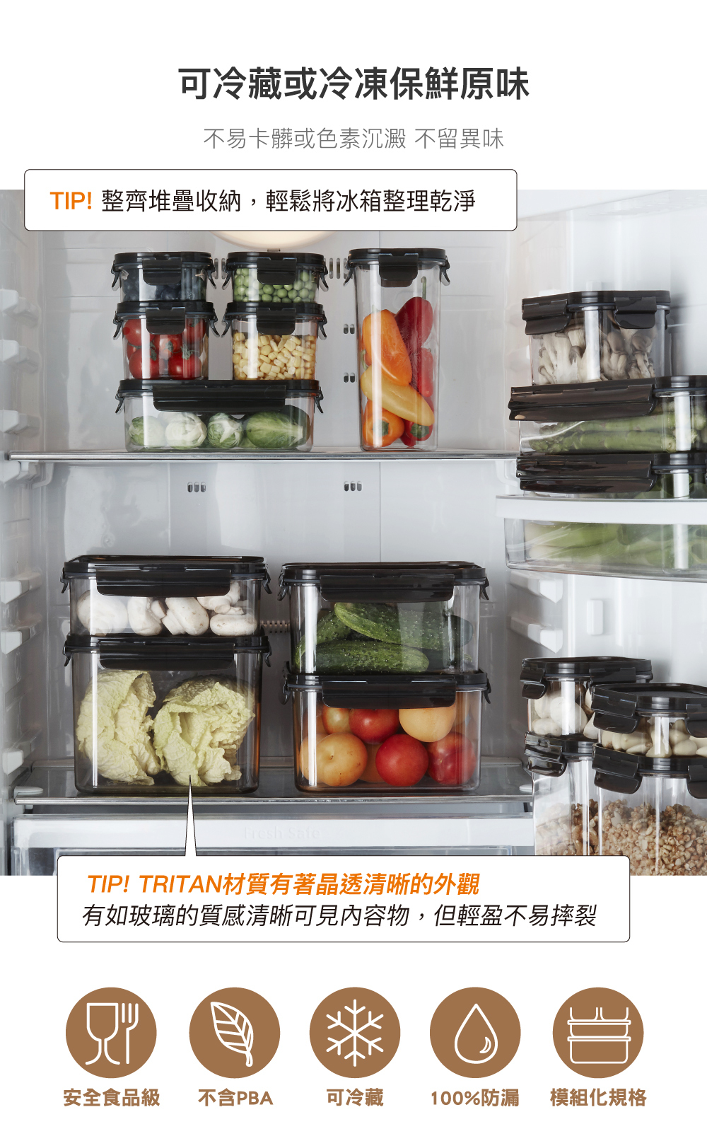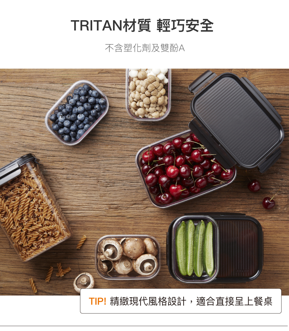 盒身為Tritan共聚酯材質,材質輕巧安全,不含塑化劑及雙酚A