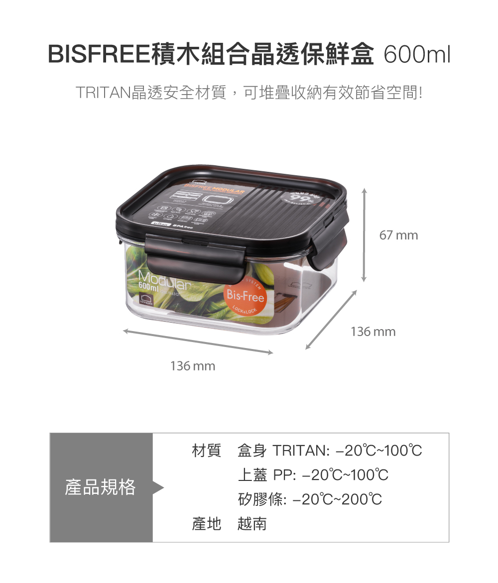 盒身為Tritan共聚酯材質,材質輕巧安全,不含塑化劑及雙酚A