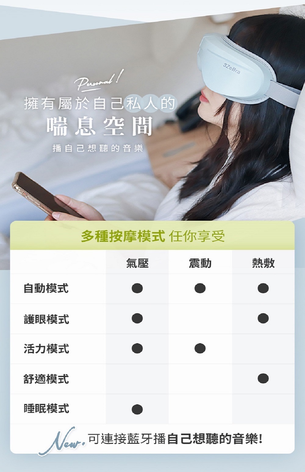 5C莫蘭迪音樂按摩眼罩,同時兼具按摩眼罩與熱敷眼罩的功能,可舒緩眼睛疲勞,促進眼部血液循環。按摩眼罩結合熱敷眼罩功能,熱敷眼罩恆溫40度,按摩眼罩仿人指壓按摩,對長時間使用電子設備、眼睛疲勞或眼壓過高的人群有益。配備藍牙音樂功能,可以播放舒緩的音樂或自然聲音,幫助您放鬆身心。
