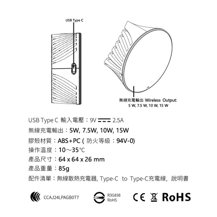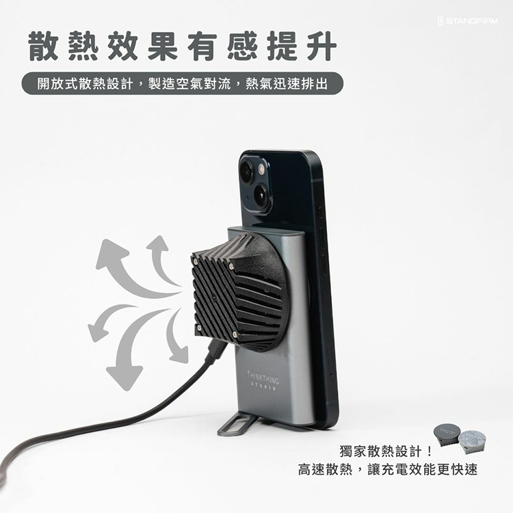 配備了散熱技術,同時備有最高18W (平均15W) 的充電效能,在為手機充電的時候,不容易發熱,把無線充電效能提升到極致。